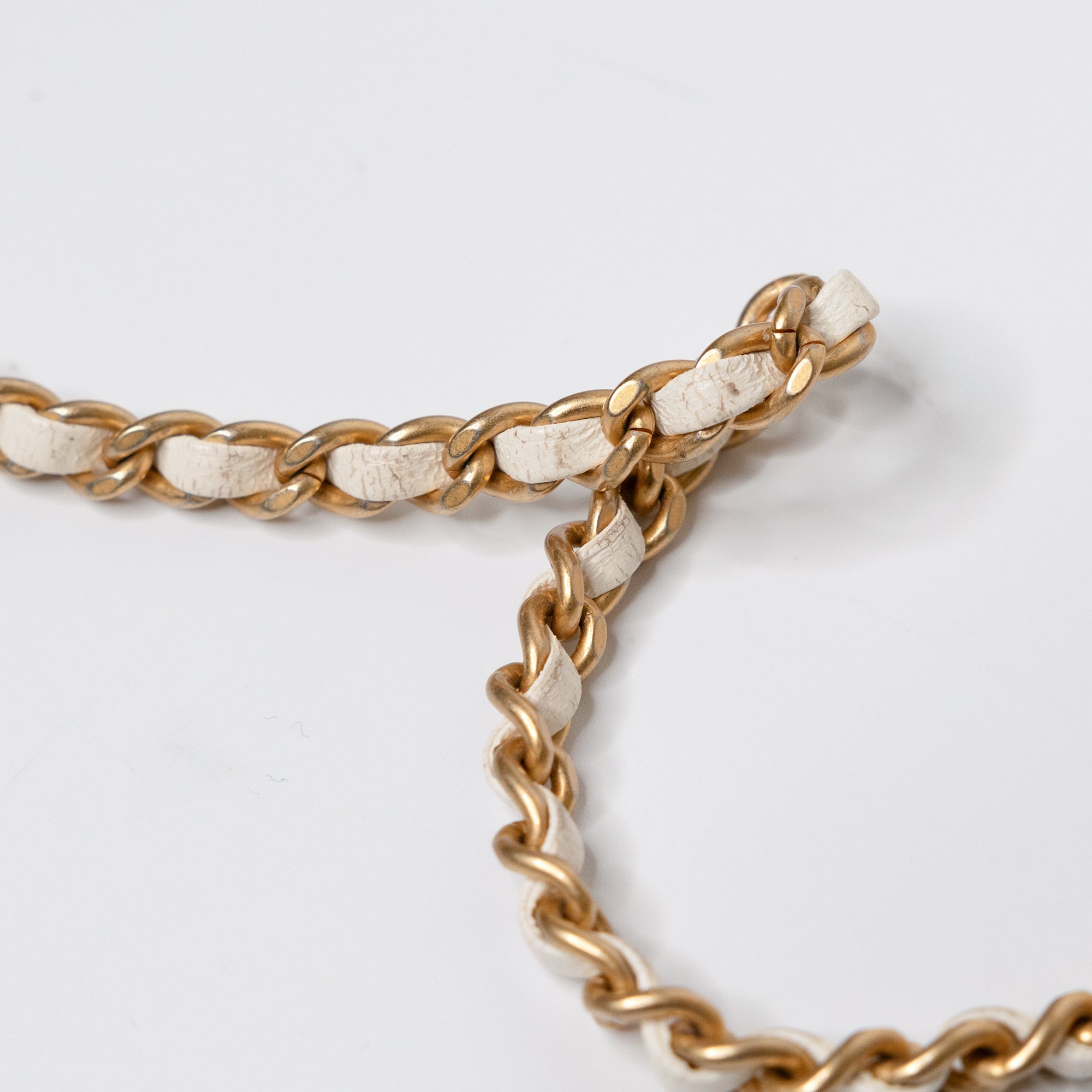 This item is clean with normal signs of use. Corners show wear, interior is clean, and the leather-through-chain strap has some rubbing.